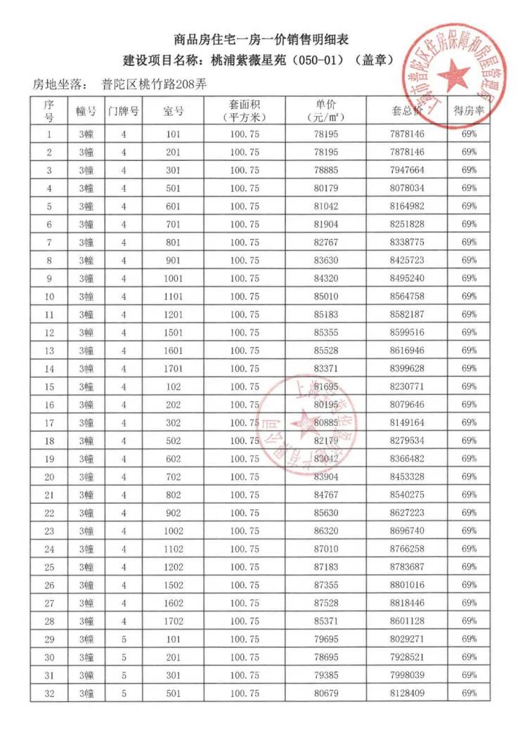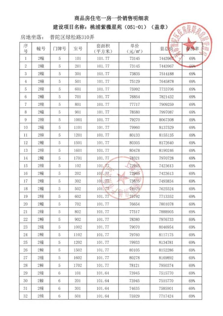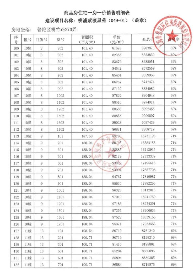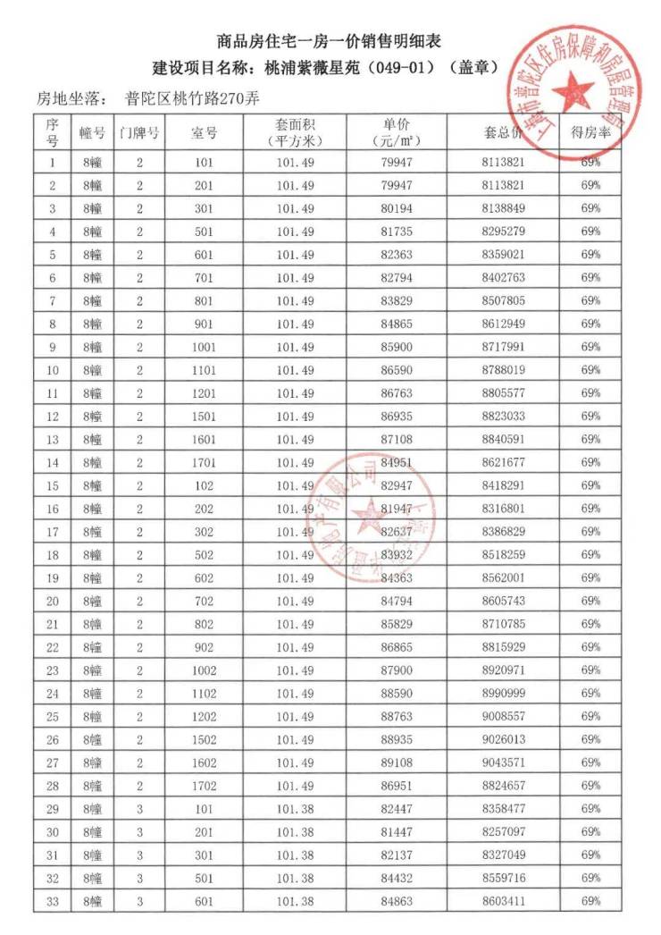 项目一房一价表▼