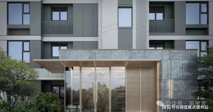项目的建筑外立面采用现代简约的风格,搭配有序的横线线条, 以米白色为主并搭配一定香槟金暖色调,并利用大面积玻璃+部分房间近乎落地窗设计,通过分段式化解建筑尺度,丰富造型,整体时尚且更为耐看。
