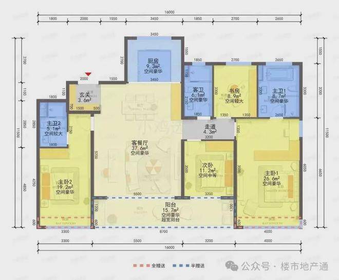 缺点:有一个暗卫,北面书房紧挨着电梯有部分震动噪音影响,主卧进门有一些浪费