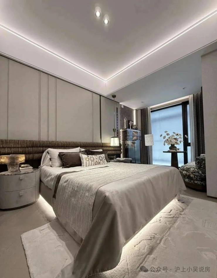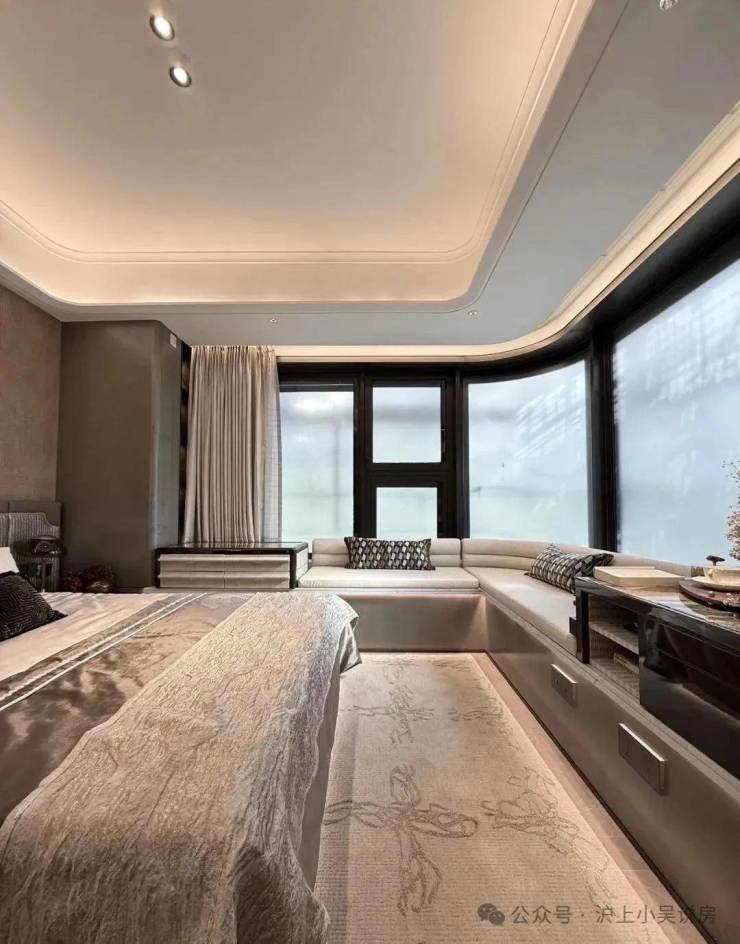 豪华的套房设计,北侧卫浴飘窗+南向床边双飘窗的设计,更是把这个空间的视野和收纳空间延展开来,尺度感真的很惊人。