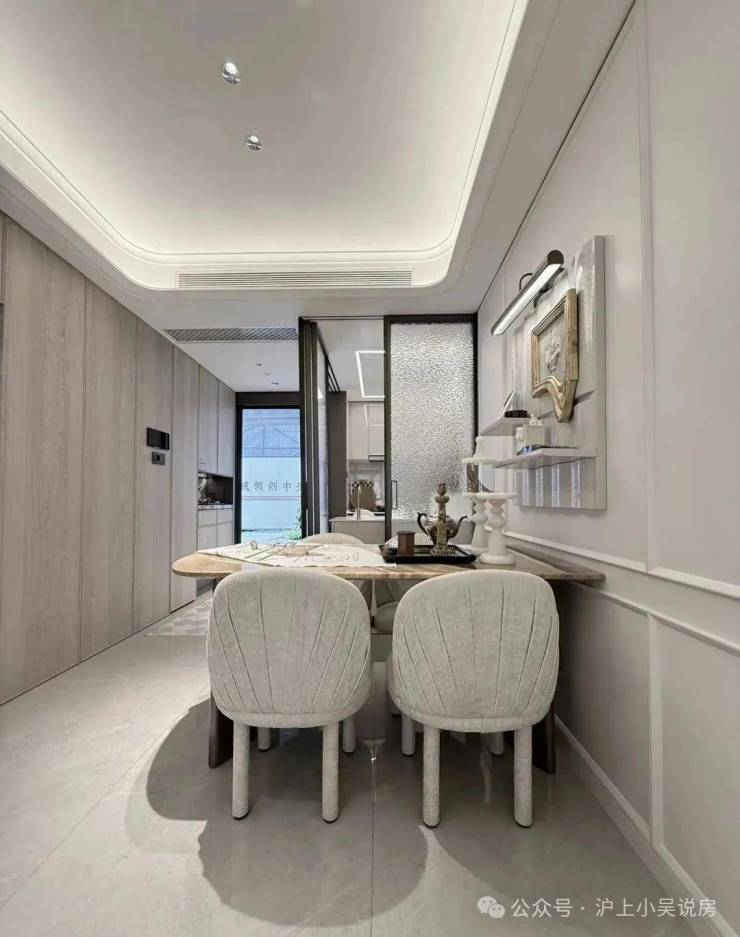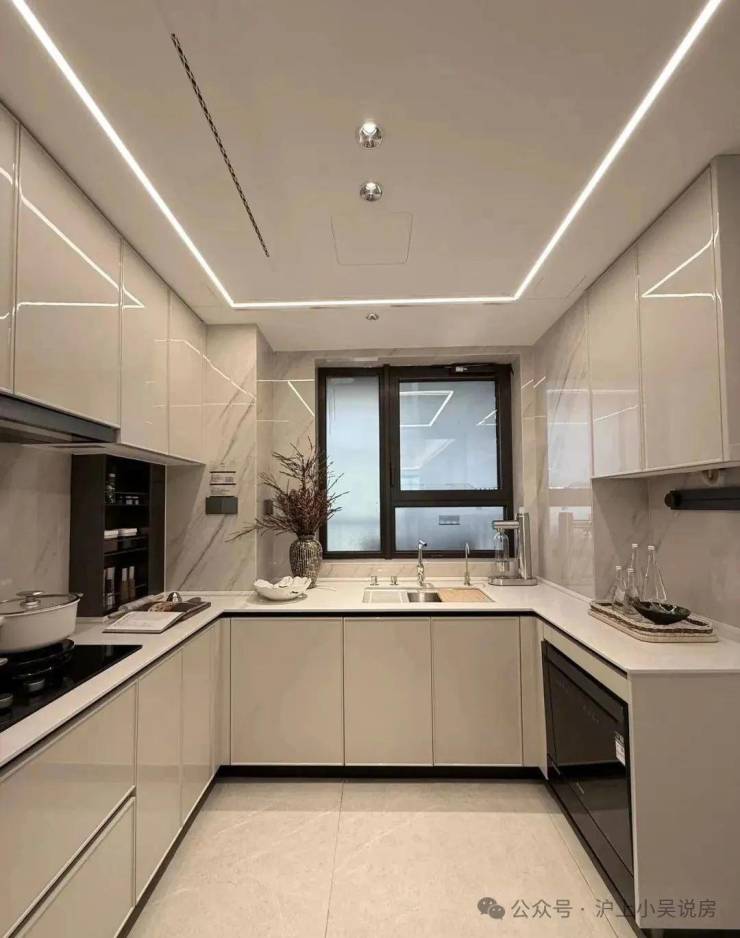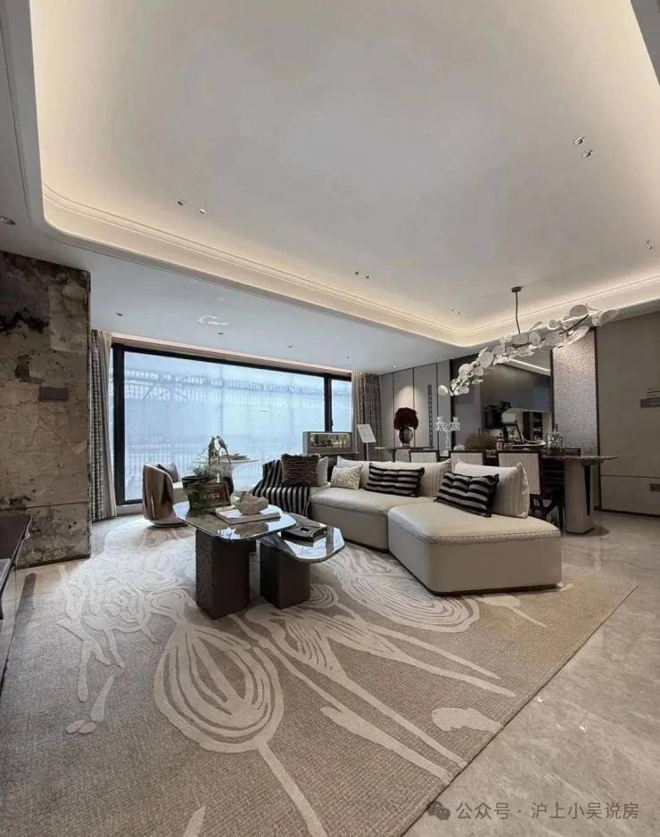 除此之外,最让我惊艳的还是这个能放下6-8人餐桌的宽绰厨房,以及这个尺度感惊人的客厅 。