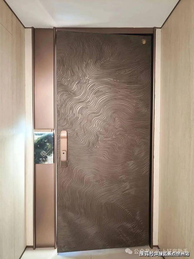 回归大家最关心的室内,品质一如既往,金隅公园东序售楼处电话☎:400-8266-670✅✅铝雕钢质门先声夺人,波浪状的金属纹路高级感满满,搭配日本松下多功能电子锁,保证了足够的安全性和私密性。