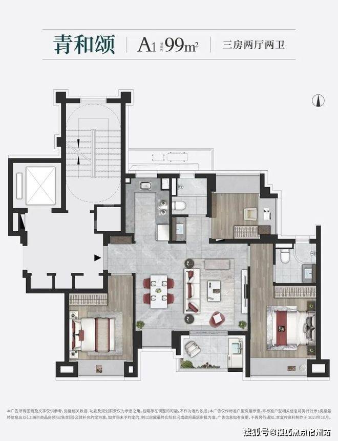 建面约99㎡爆款户型约99㎡3房2卫户型是上海市场中最主流的面积段之一,但印象青城的户型设计却超脱以往。四开间朝南的设计,✅✅印象青城售楼处电话:400-882-4258✅✅让室内的采光相当出色。