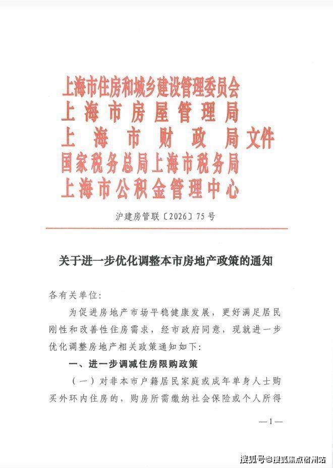 为更好满足居民刚性和改善性住房需求,促进房地产市场平稳健康发展,2月25日,市住房城乡建设管理委、市房屋管理局、市财政局、市税务局、市公积金管理中心等五部门联合印发《关于进一步优化调整本市房地产政策的通知》(以下简称《通知》),自2026年2月26日起施行。