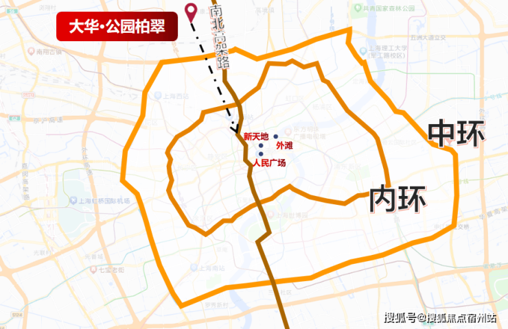 大华·公园柏翠不远处的南北高架,串起了上海核芯最重要的两条纵贯线:中环线和内环线,撑足了“条条大路通城市封面”的气场。