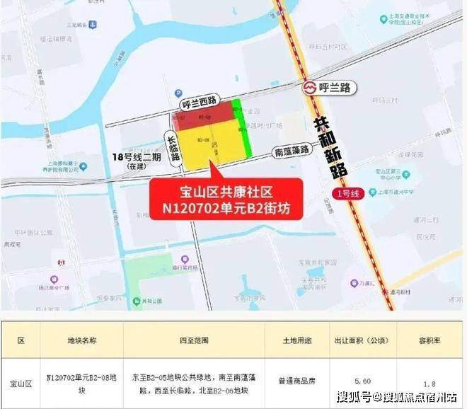这宗编号为宝山区N120702单元B2-08的地块出让面积约5.6公顷,规划建筑面积超过10万平方米,容积率为1.8。这也是该板块时隔20年再次推出的市场化住宅用地。