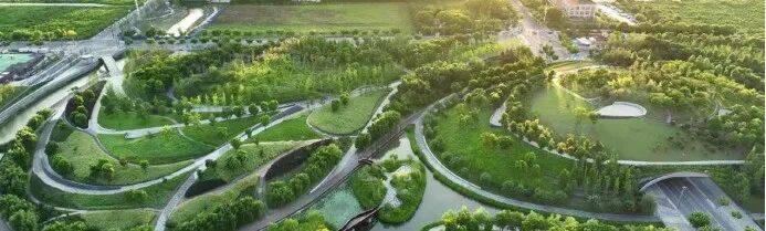 紧邻50万方桃浦中央绿地,规划100万方智创森态中央公园
