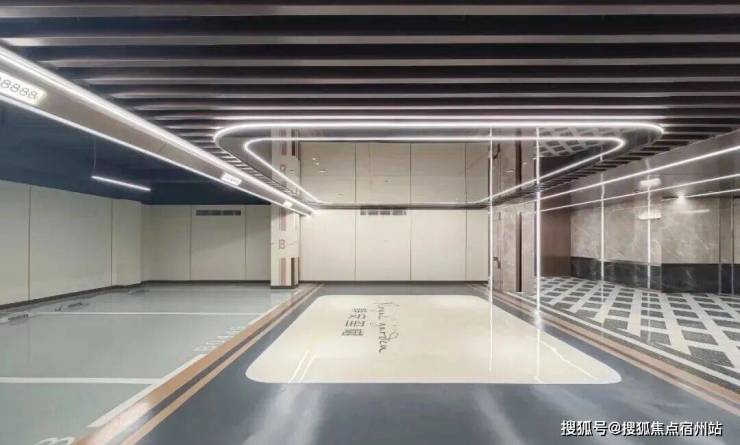 车库公区方面,项目采用贯穿式鱼尾灯坡道和超耐磨地坪,过道全部是精装吊顶,地下管道和局部区域进行二次包裹。