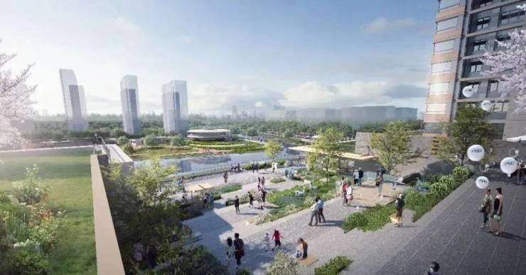 项目将公园及天然水系引入社区,约3万方运动竞技公园+约14万方滨水艺术潮流公园+城市绿地,以约20万方滨水双公园,构成一幅自然生态下的超级TOD底盘。如今保利TOD的公园部分已经实景呈现,俨然成为南上海的网红打卡点。