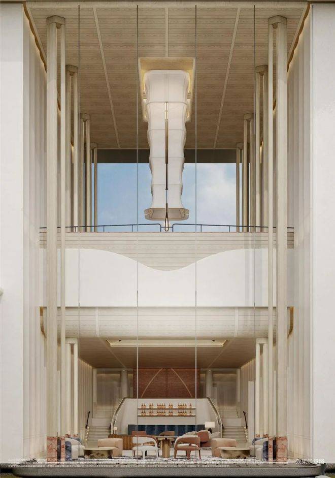 步入式归家大堂拥有约13.7米建筑层高,视觉锤设计,模拟甲板视野,打造超越常规视觉震撼力!