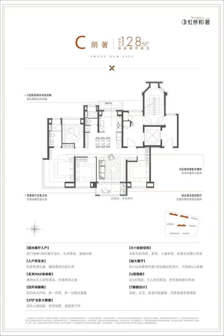 建面约128㎡4房稀缺改善户型,灵活性强