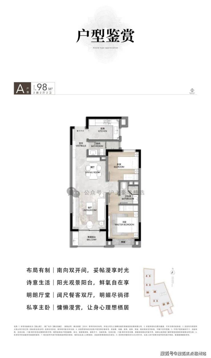 在住宅户型设计方面,可以明显感受到企业的实力与匠心独运。市场上常见的“百平米三居室”往往流于形式,很多设计仅仅是勉强拼凑空间,导致居住的舒适度大为降低。大多数此类小三房户型中,北向的房间过于狭小,难以容纳标准尺寸的床铺,仅能作为书房使用;厨房与餐厅的空间亦显局促,影响烹饪与用餐的体验,这些是市场上小三房普遍存在的问题。然而,在「静安玺樾」项目中,这些问题均得到了妥善解决。为了提升居住品质,「静安玺樾」的98平方米两居室设计充分考虑了空间的尺度与舒适性。