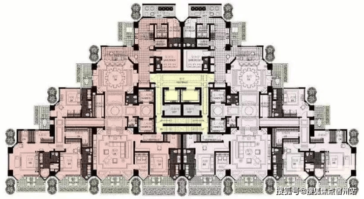 外部设计已经足够令人震撼,内部户型更是壕到无法想象。独特的金字塔设计,仪式感超强。所有住宅单元都尽可能南向,拥有360°采光的同时不浪费一丝一毫的江景。