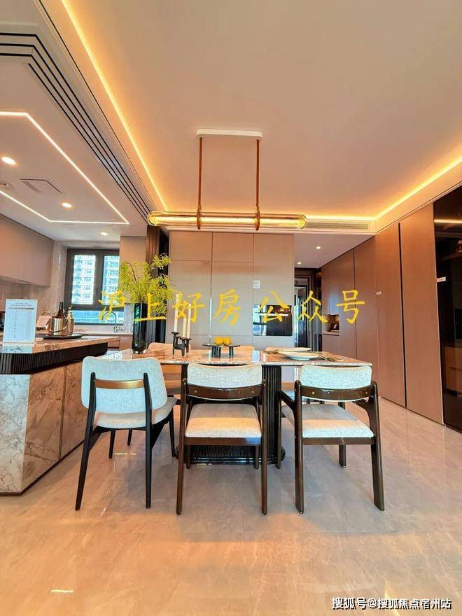 问题。厨房、餐厅、客厅三大空间联通,不仅通透感十足,还构建了一个利用率超高的家庭核心区,在这样高度开放的空间里,即使互不交流,也能保持交流和关注!