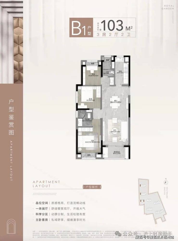 第一个亮点, 就是动静分离,功能区和休息区互不干扰,客餐厅、厨房等公共活动区集中在一侧,卧室等休息区全部一侧,保证了私密性!