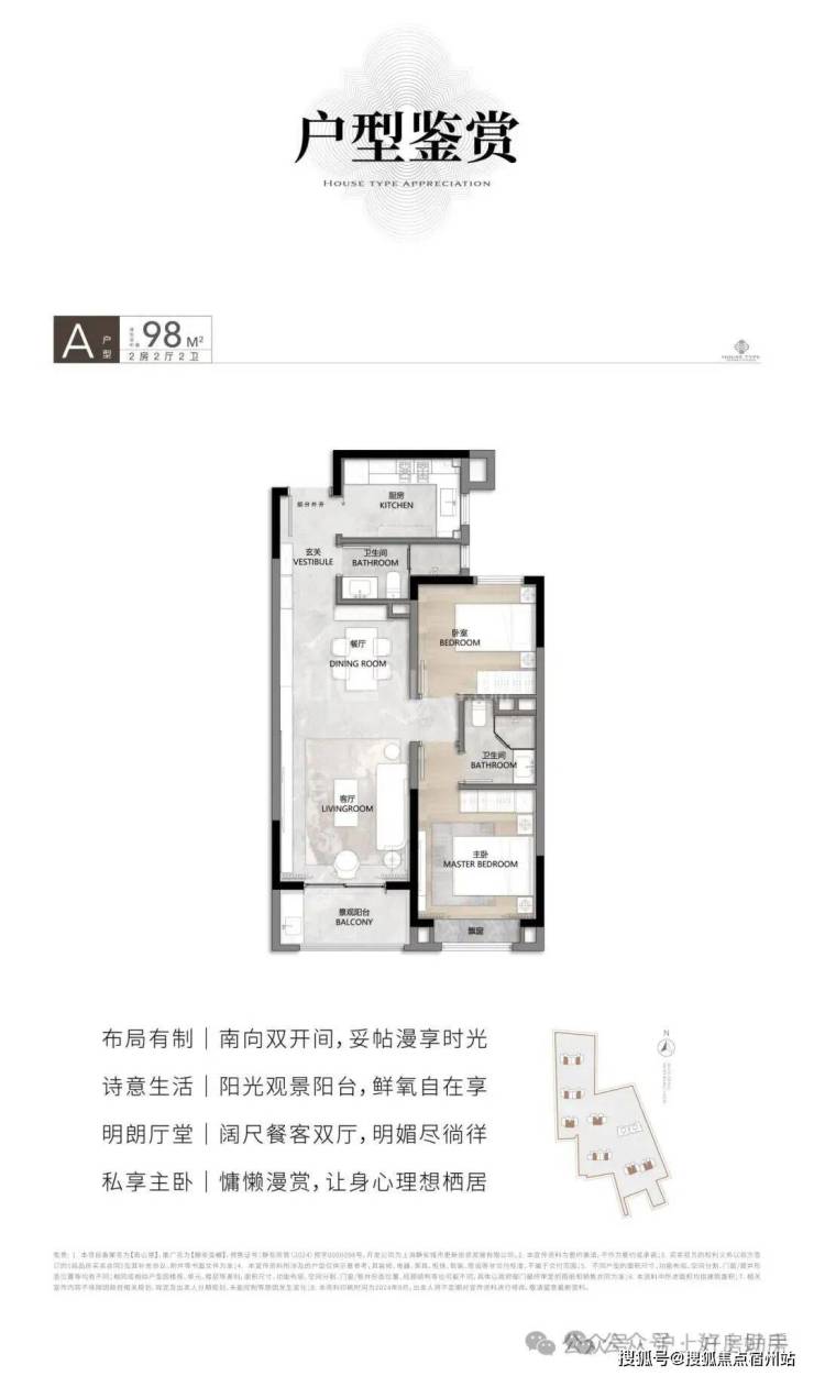 建面约98㎡2房2厅2卫▼