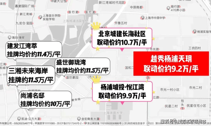 而只有 上海北中环沿线 附近的新房 越秀·杨浦天玥 成为了中环沿线最便宜,也最有性价比的项目。该盘 过会均价只有9.2万/平 ,对比上述一众其他区域新房10万+/平来说,简直就是 性价比无敌的存在!