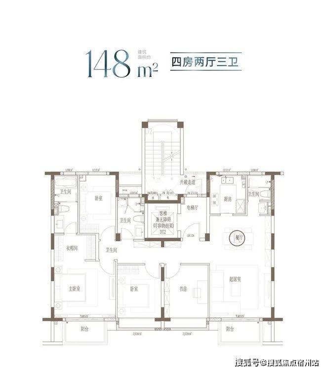 建面约148m²的宽境4房,拓宽空间尺度;大开间、进深短,通透采光;主卧独立卫浴,优雅随心的寝居感受。