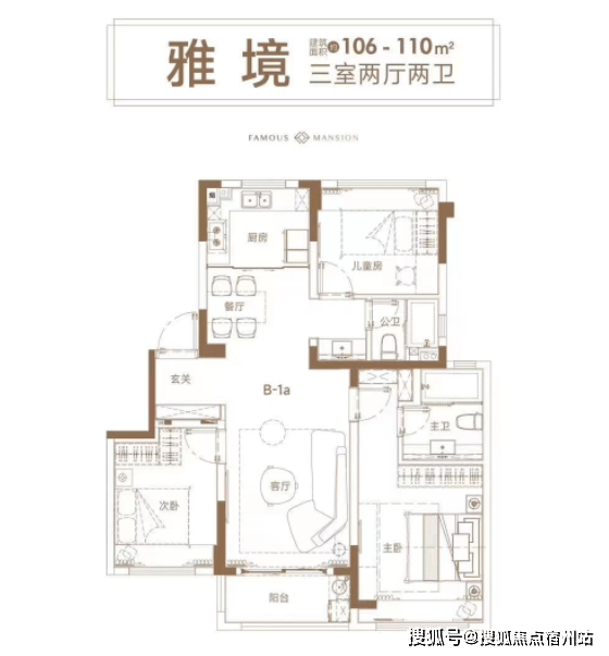 此外,项目还有建面 约106-110㎡三房可供选择,户型图如下