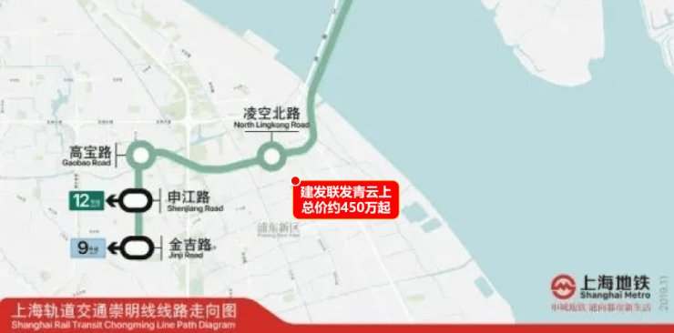 崇明线已经在建,预计2027年建成通车(来源:上海发布)。届时从凌空北路站2站即可到达申江路站,换乘12号线;3站到达金吉路站,可换乘9号线。