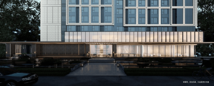 大堂入口取意于上海半岛酒店抬首即见的星河璀璨,灵动光影点缀归家的路。地库入口的一抹“普拉达绿”和顶部透光仿云石顶设计,如同时光的礼赞,迎接每一位业主的归来。