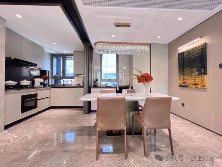 就拿餐厅而言,这个户型可以放下一个5-6人的圆桌,可以满足一大家子围坐大圆桌吃饭的需求。