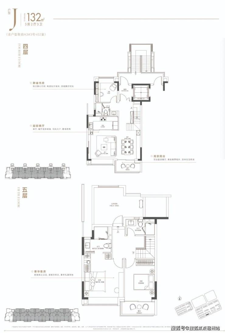 上叠产品创新采用南北双露台+南向双阳台布局,270度全景采光面让室内外空间完美融合。边套户型的1楼客餐厅和2楼主卧,更增设侧飘窗,将社区美景尽收眼底。