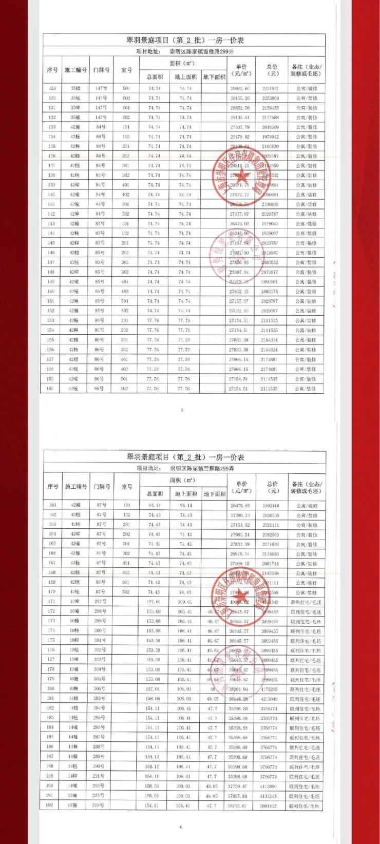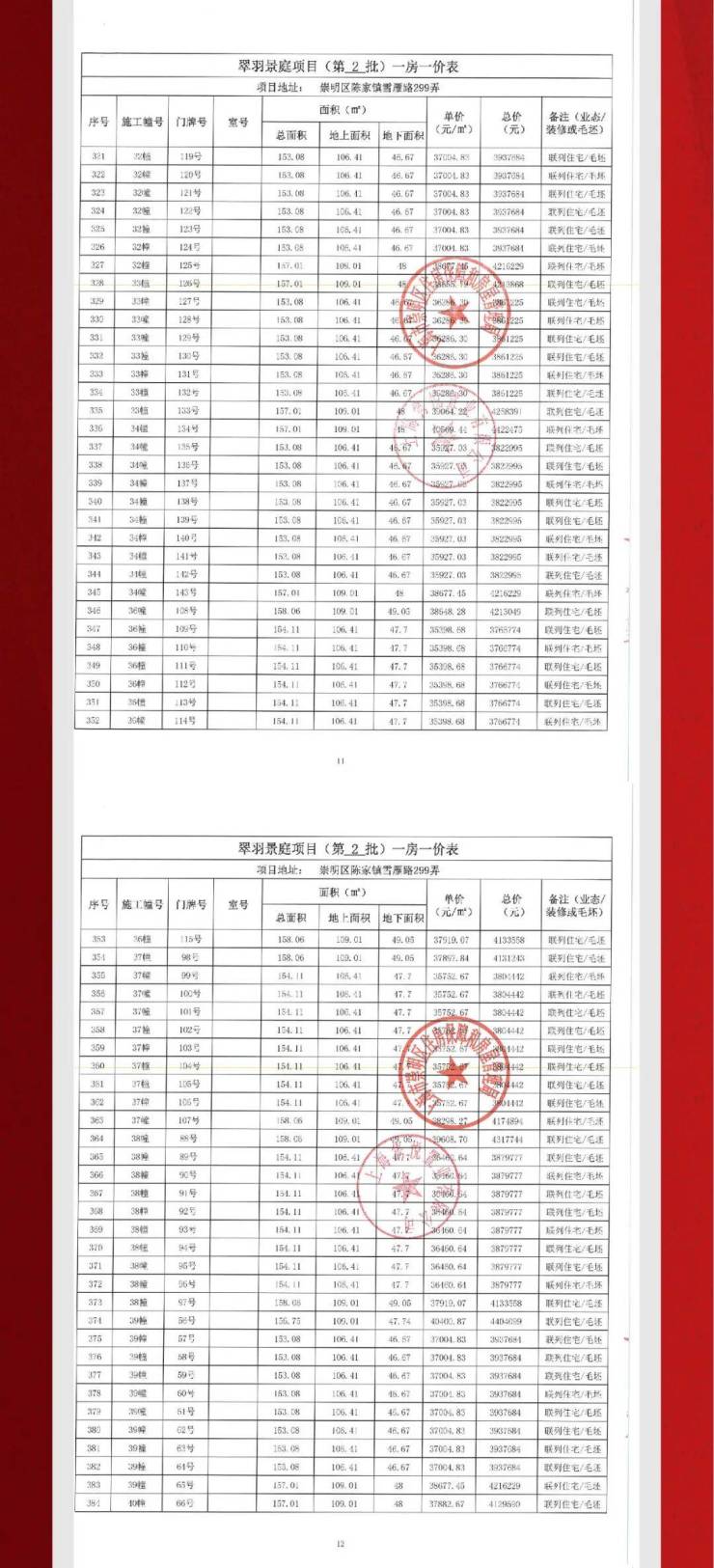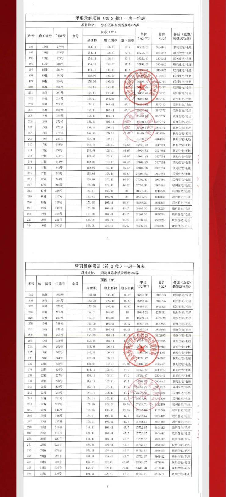 一房一价表