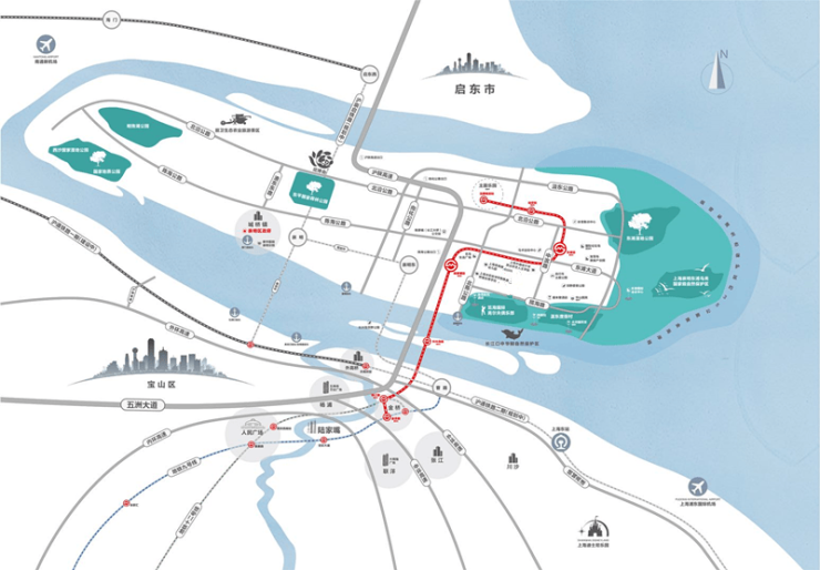 凭借一系列的交通利好,崇明岛陈家镇,完美实现了人民广场一小时内通勤圈。