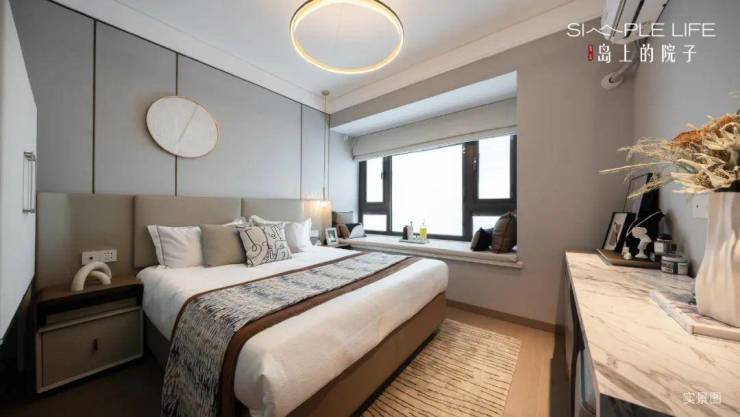 主卧也颇具亮点,面宽达到约3.5米,飘窗的尺度很给力,进一步扩大了使用空间。