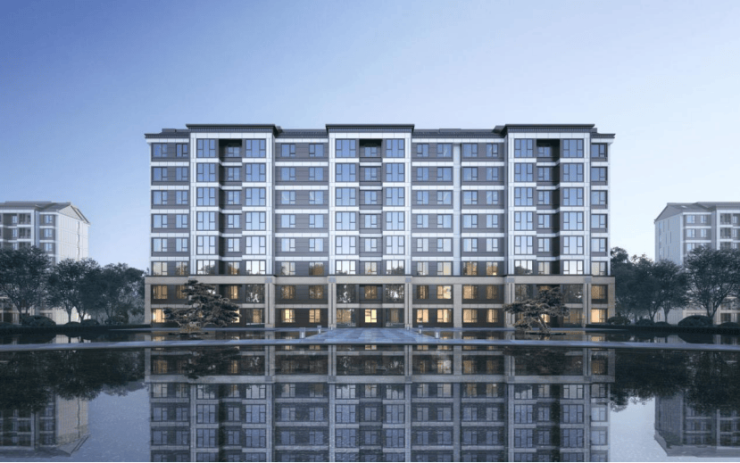 建筑立面:沿用中国特有的江南水乡建筑风格,采用古典三段式分割比例,保留坡屋顶元素,将含蓄雅致的文人情怀融入建筑,使人入园如临江南之境,尽享诗意雅居的惬意。