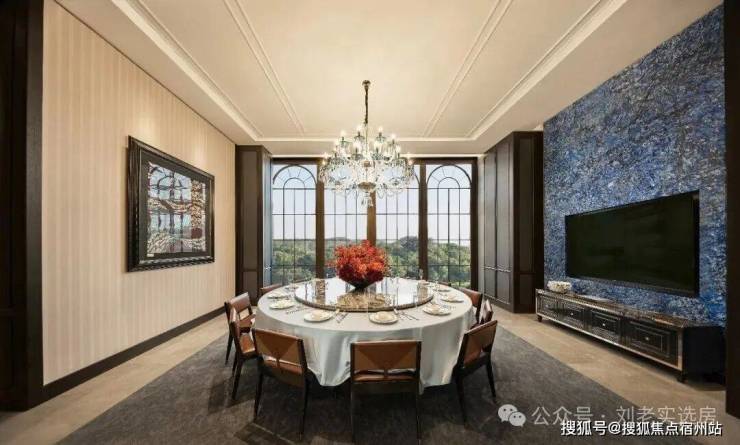 比如项目的门楼采用了上海海鸥丽晶酒店同款 巴西金石材。 接待大厅采用进口奢石 巴西乌金石 打造的大理石柱。接待台则采用 玻利维亚蓝 ,这是世界上储存量极少的石材之一,被称为奢石中的劳斯莱斯。随处可见Old money的奢华风格。