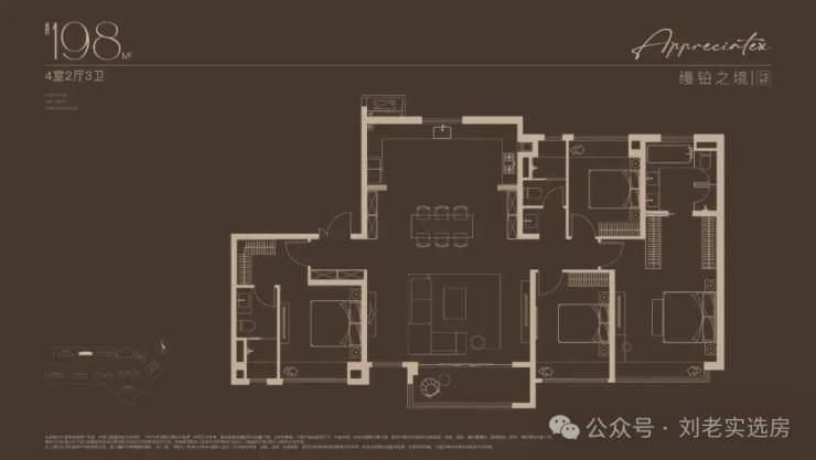 一步到位的宽奢4房!这是一个超大横厅的飞机户型,尺度感超强,餐厅甚至能放下一个8人桌,让一家人享受天伦。