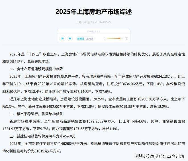 据上海市统计局公布数据,2025年上海市新建住宅销售均价为46268元/平方米,该数据客观反映了全市新建住宅市场的整体价格水平。