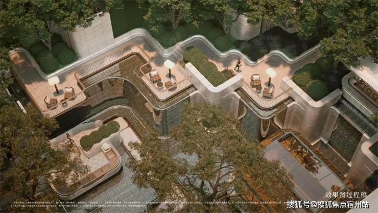 还有罕见的双下沉庭院,以约5米的垂直高差 打造垂直流动的立体岛屿,给业主优雅从容的庄园生活。