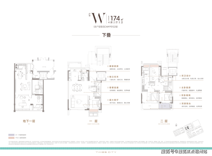 174m²下叠,挑高的宽绰地下室+公共绿地,真正的别墅享受:
