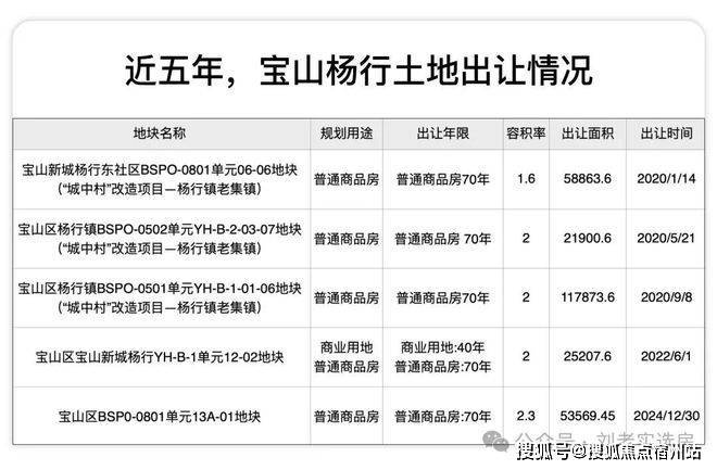 首先,回顾杨行近五年的土地出让情况: