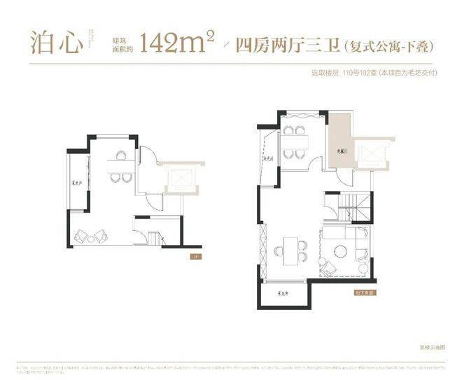 项目叠墅户型有建面约142㎡下叠,建面约139㎡上叠。