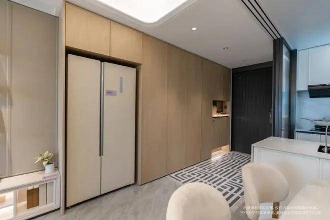 首先, S墙的设计,为了让小户型也能容纳双开门的大冰箱。