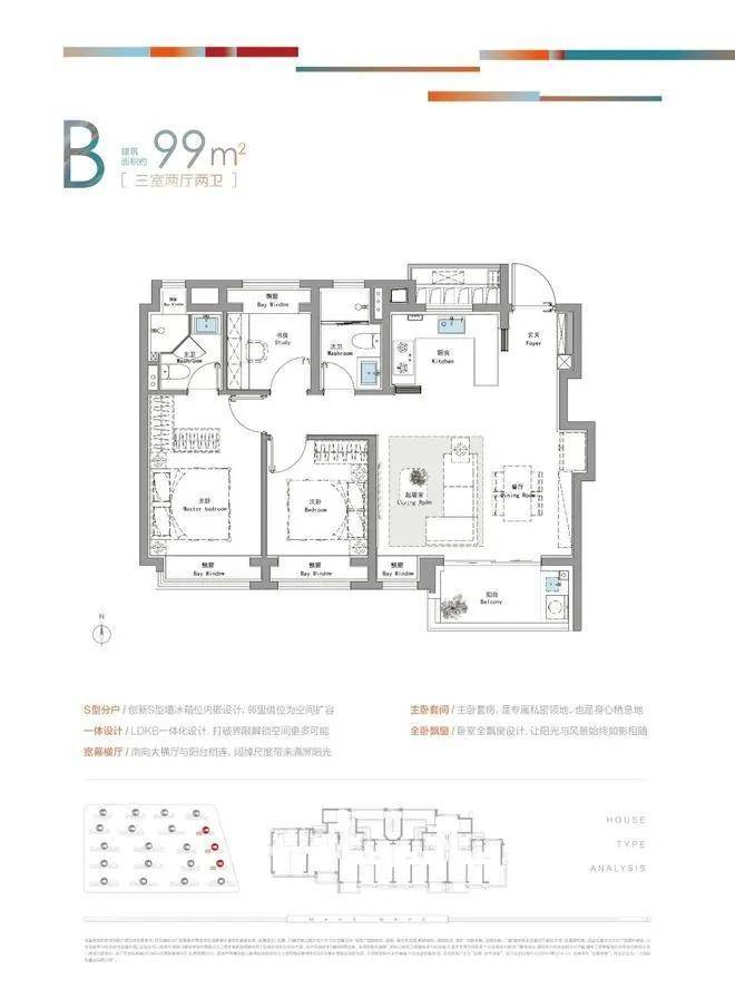 当然,还有 三开间朝南、全卧室带飘窗以及卫生间干湿分离等等细节都有配备。