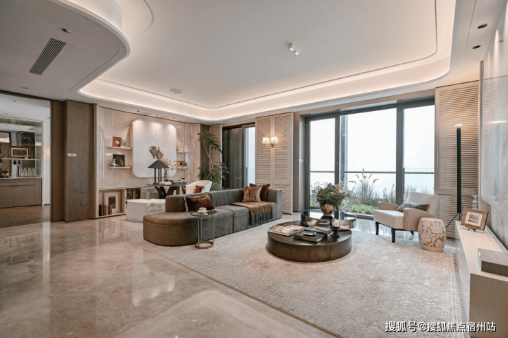1、【巨幕景观客厅】最宽的客厅面宽约5.65m, 和市面上180平左右的客厅面宽差不多。客厅大面宽带来阳光全天候洒满客厅,每一天都沐浴在温暖的阳光中。