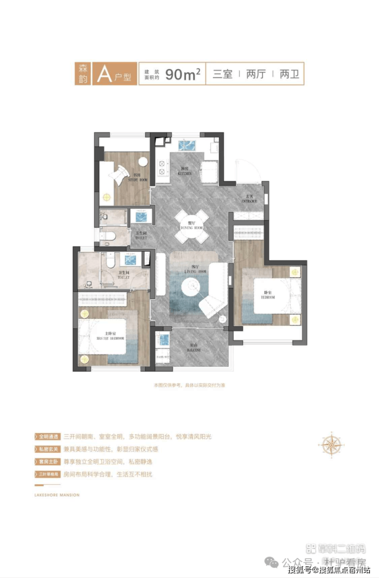 约90㎡三房两厅两卫 约100㎡三房两厅两卫 约136㎡四房两厅两卫