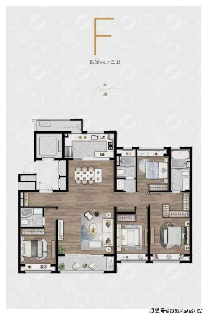 F户型:建面约168㎡4房2厅3卫✅✅陆家嘴锦绣云澜售楼处电话:400 - 8824 - 258✅✅