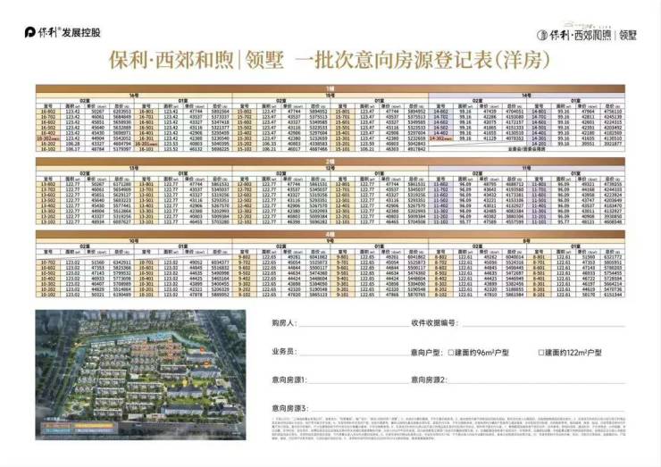 最新消息,保利西郊和煦 火爆认购中!均价约69999元/平方!主推建面约96-165平高层/联排别墅!内附完整一房一