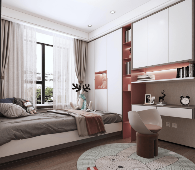 双套房设计,主卧带卫生间+衣帽间,次卧带衣帽间+飘窗,让两代家庭都能拥有自己的私密空间。