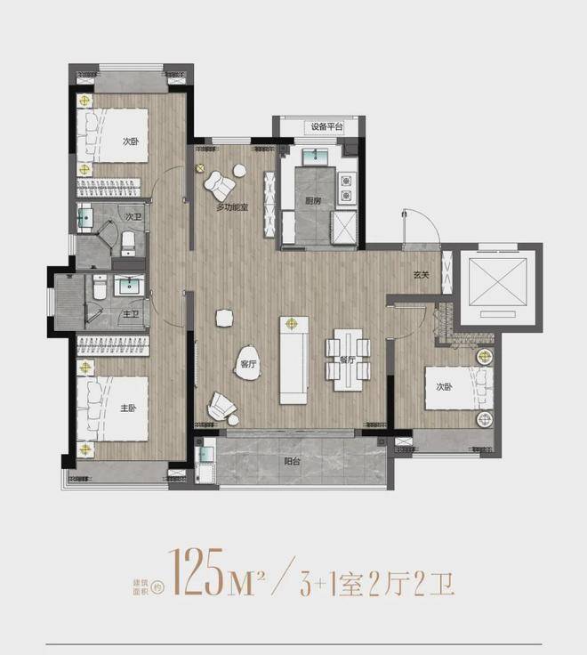 建面约125m²户型图
