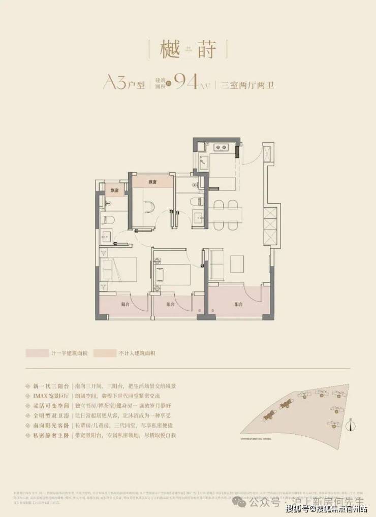 建面约94m3房2厅2卫