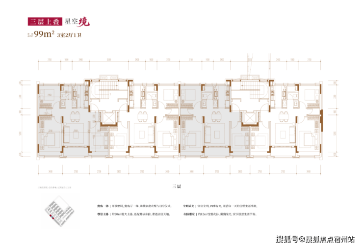 建面约99㎡3房2厅2卫(三层上叠):