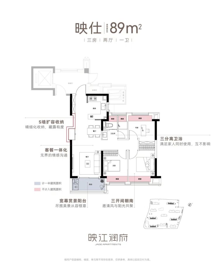 建面约89㎡三房两厅一卫▼☑️☑️华润映江润府售楼处电话:400-1183-605☑️☑️