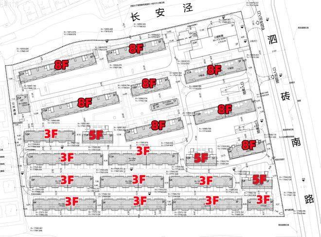 项目规划设计图已经公示,拟建10栋3F别墅,3栋5F叠加别墅以及7栋8F洋房。